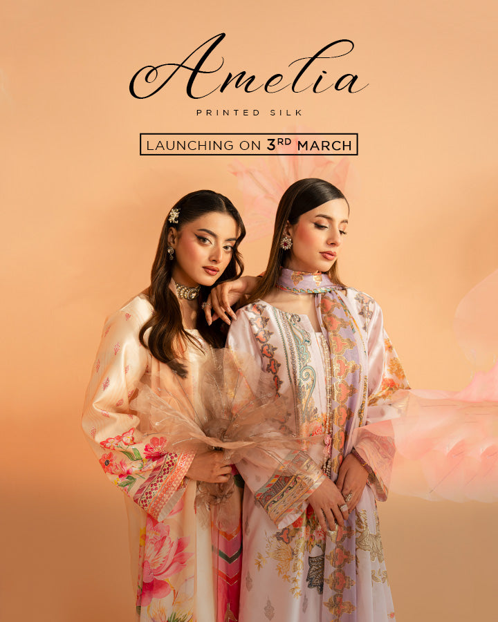 Embroidered organza shirt with delicate handmade embellishments.Embroidered net dupatta with refined embroidery.Embroidered raw silk trouser....