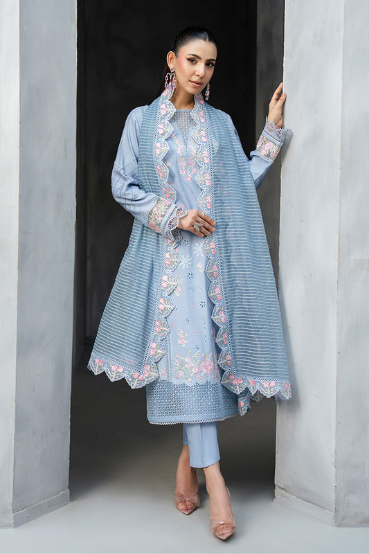 Embroidered cotton shirt. Embroidered chiffon dupatta. Plain cotton trousers. WASHING INSTRUCTIONS:Dry Clean Only.Do Not Use...