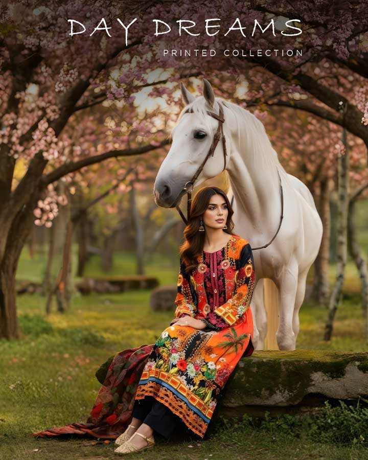 Embroidered cotton shirt. Embroidered net dupatta. Plain cotton trousers. WASHING INSTRUCTIONS:Dry Clean Only.Do Not Use...