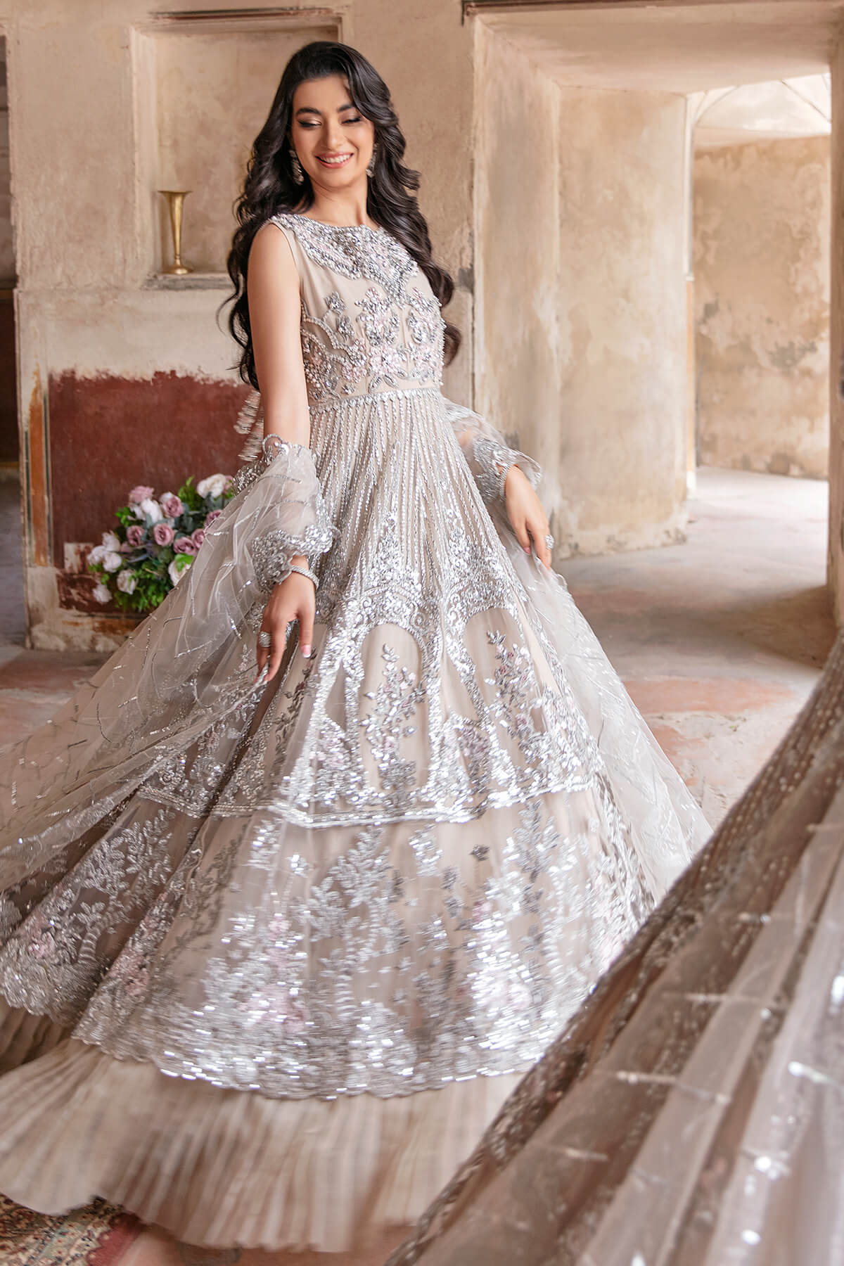 Embroidered net panels with stones embellishments for lengha & maxi: