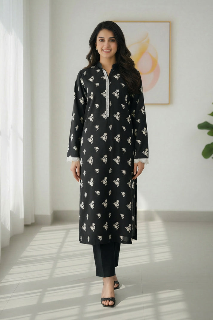 . For urgent delivery, contact our support team before completing your purchase. . Stitched outfits include trousers made from the provided unstitched fabric for a cohesive look.