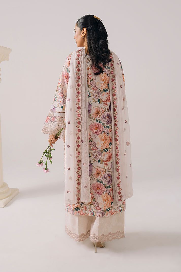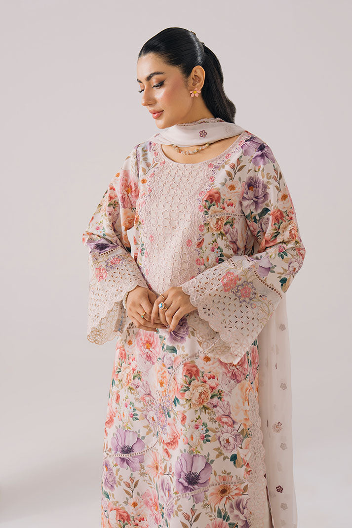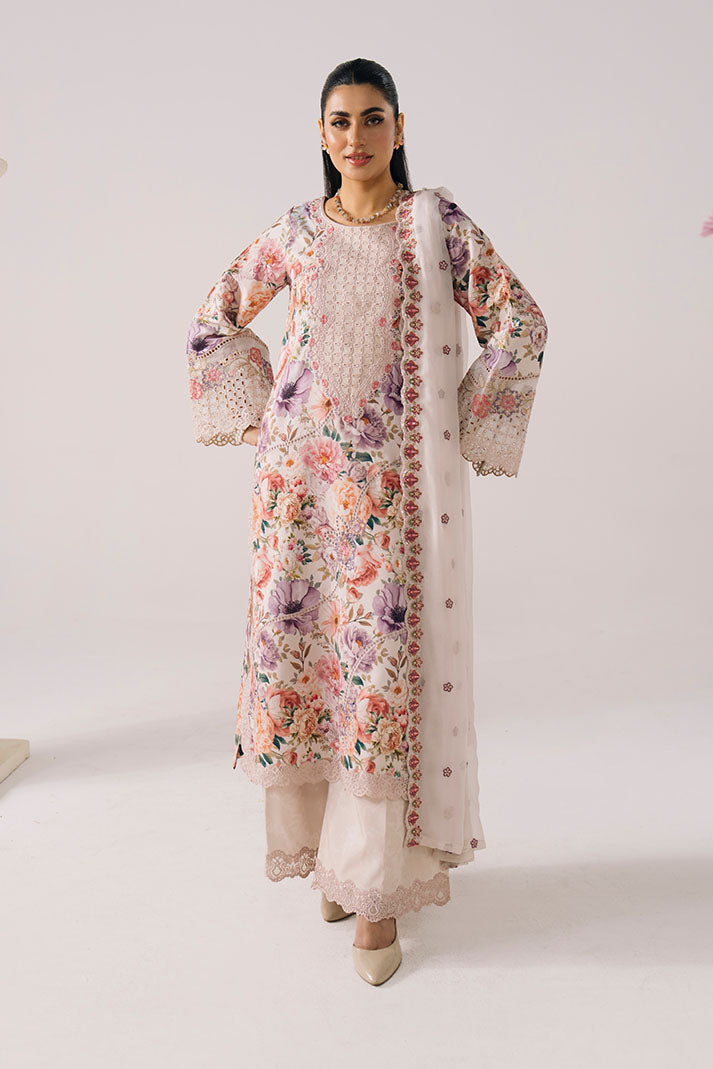 This design features a beautifully printed lawn shirt enhanced with delicate embroidery on the neckline and sleeves, offering a refined yet breathable summer look. It is paired with an embroidered chiffon dupatta that adds graceful movement and elegance. The printed lawn trouser completes the outfit with effortless comfort, making it ideal for warm-weather styling.