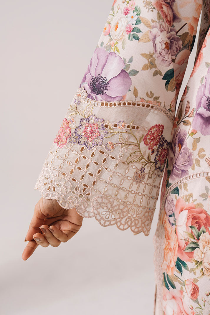 Printed lawn shirt with embroidery on neckline and sleeves.