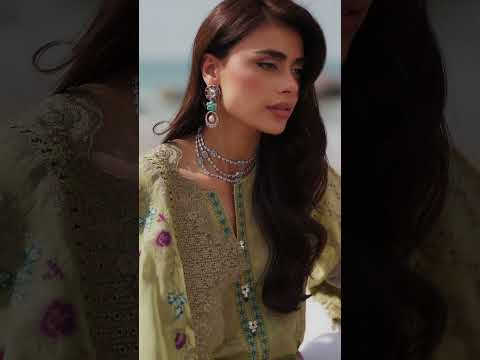 This intricately crafted outfit features a multi-panel embroidered lawn front, creating depth and visual interest, paired with a plain lawn back and embroidered sleeves. An embroidered chiffon dupatta adds softness to the silhouette, while the plain cotton trouser ensures ease of wear. Organza borders along the front, sleeves, and trouser hem complete the design with elegant detailing.
