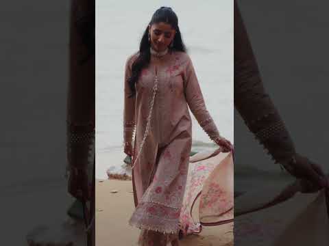 This sun-kissed ensemble features a dual-panel embroidered lawn front, paired with a plain lawn back and embroidered sleeves. A printed silk dupatta introduces a refined contrast, while the plain cotton trouser offers ease. Organza borders complete the look with delicate detailing.